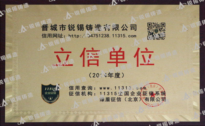 企業(yè)使命:立足鑄造產(chǎn)業(yè),鑄造優(yōu)質(zhì)產(chǎn)品,誠信服務(wù)客戶。造福全體員工,真情回饋社會,共創(chuàng)美好未來。